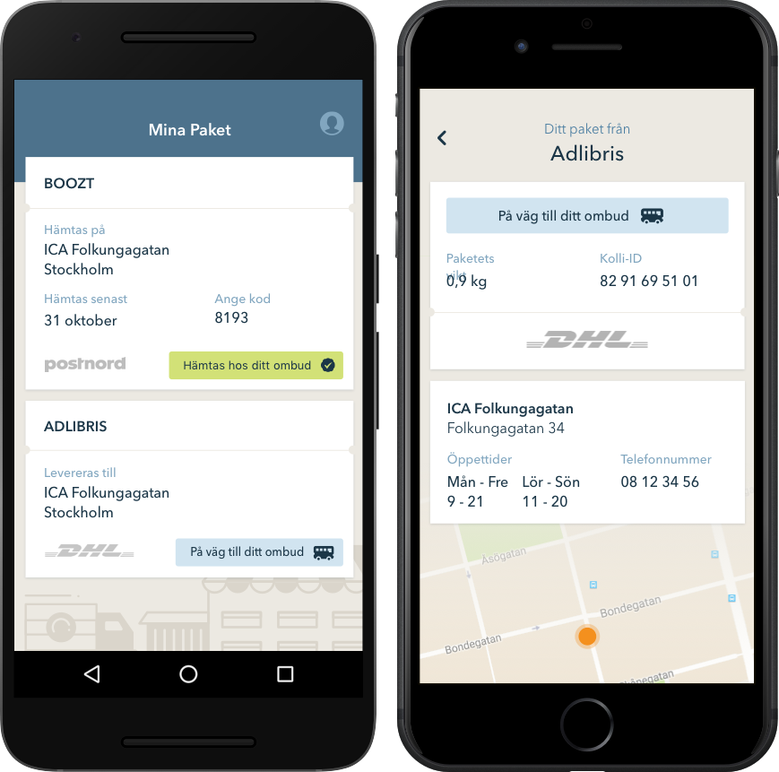 We've created the Mina Paket app for Unifaun AB, where you can view and be notified about your parcel deliveries from all of the major distributors, in one place.